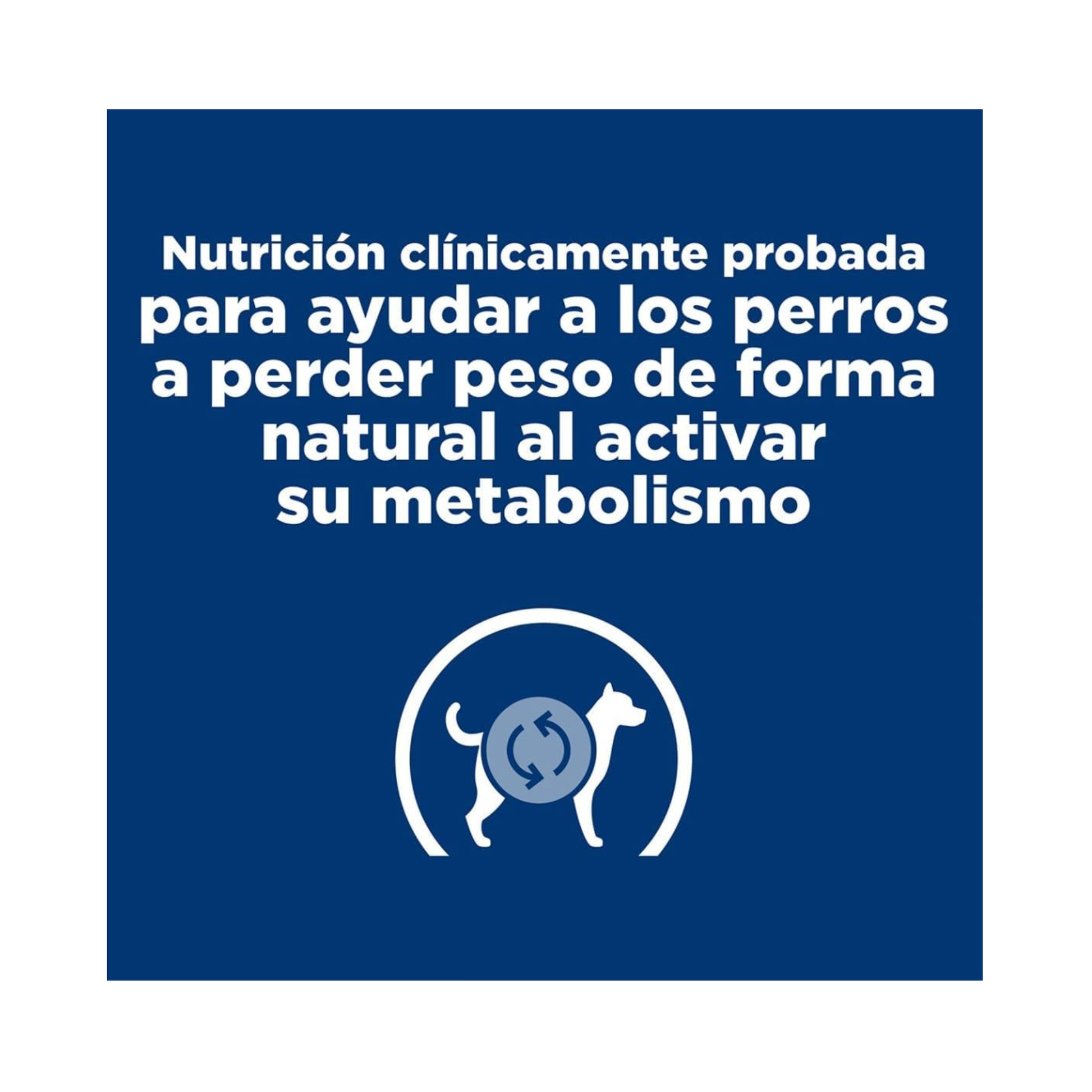 "Nutrición clínica probada para ayudar a los perros a perder peso activando su metabolismo.