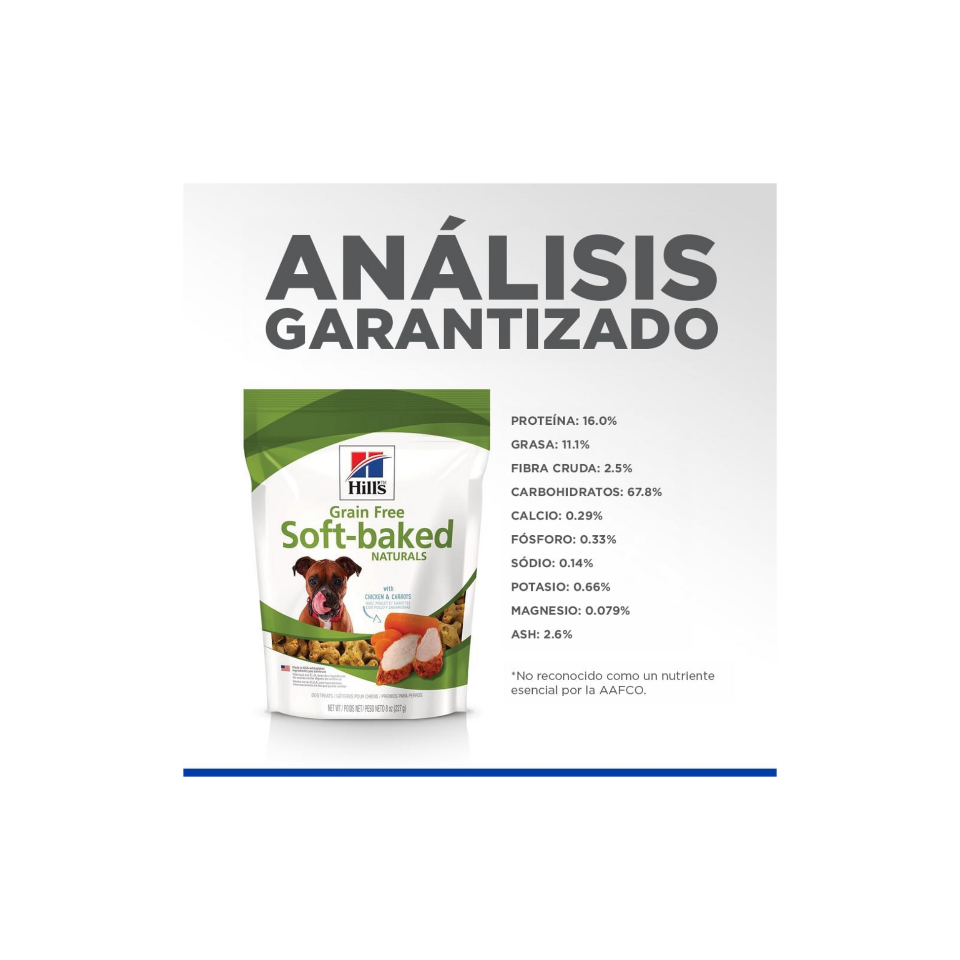 5 Premios Hill's Canine Grain Free Soft-Baked Naturals, Premios Naturales Sin Granos, Horneados Suavemente con Pollo y Zanahorias 227 g