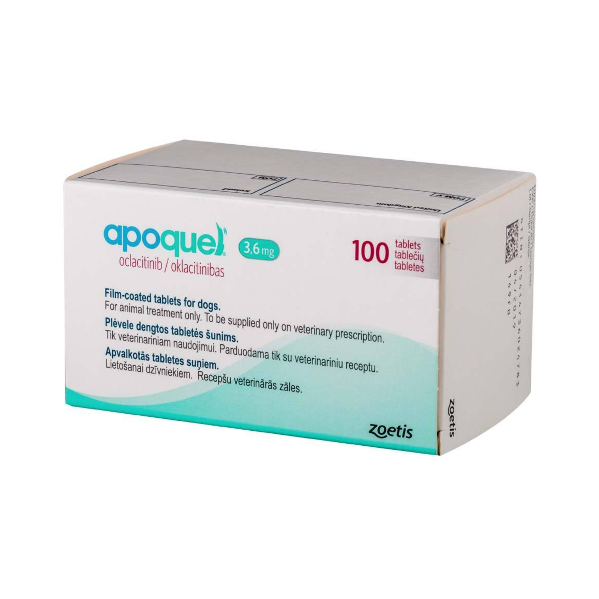 Apoquel es un tratamiento oral eficaz diseñado para aliviar el prurito (picazón) y las inflamaciones causadas por alergias en perros. Cada caja contiene 100 tabletas de 3.6 mg, formuladas para ofrecer un control rápido y duradero de los síntomas alérgicos que afectan la calidad de vida de tu mascota.