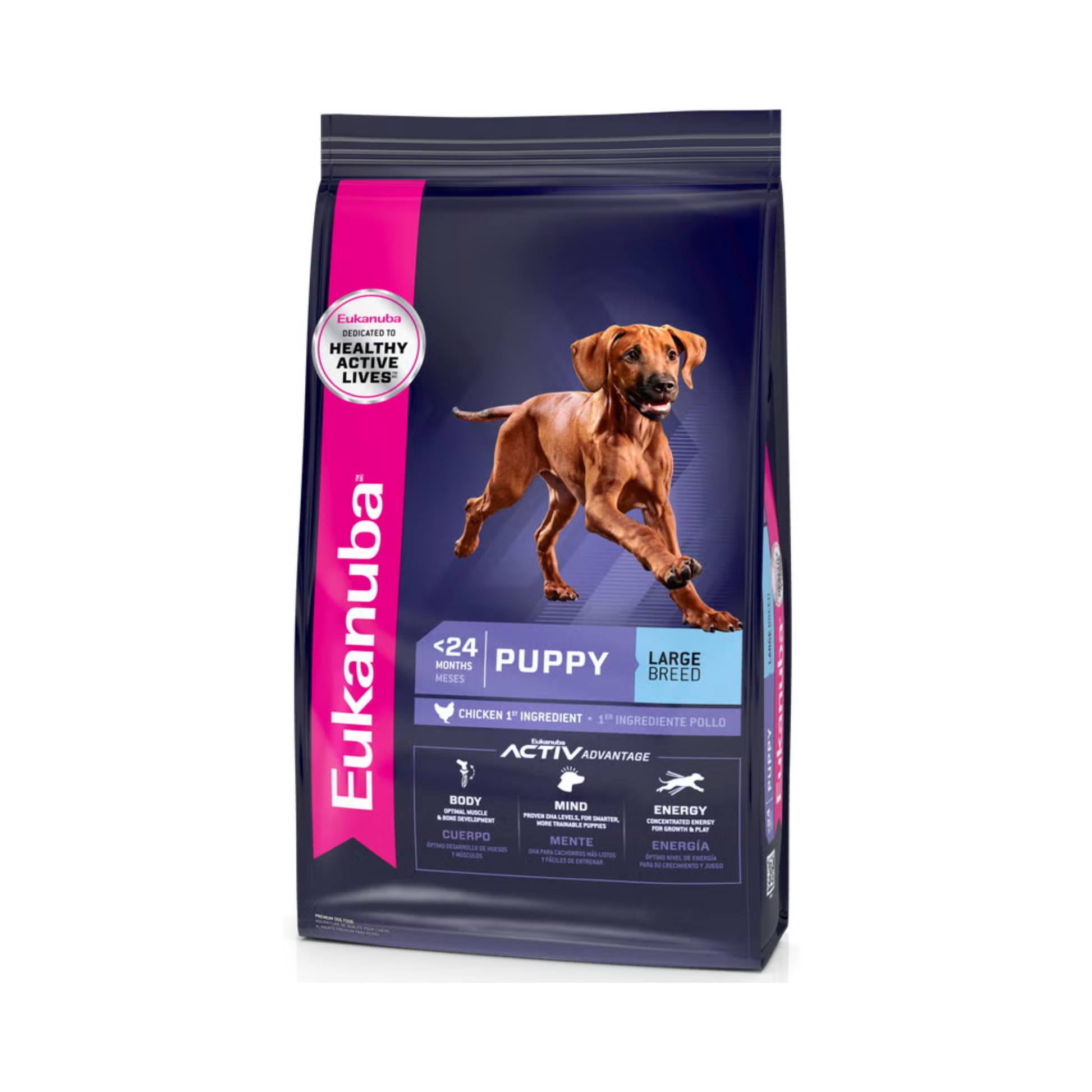 Eukanuba Puppy Large Breed es una nutrición completa y equilibrada para cachorros de razas grandes de hasta 15 meses de edad con un peso adulto esperado de más de 25 Kilos.