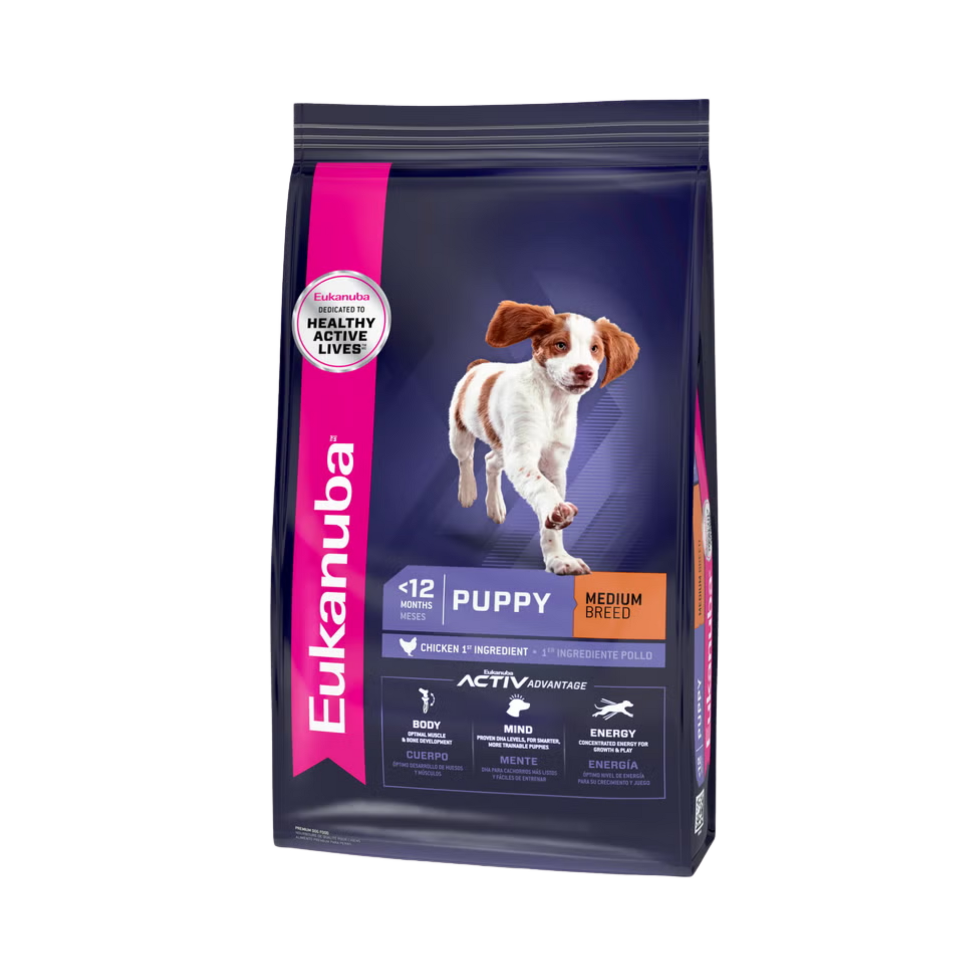 Eukanuba Puppy Medium Breed es una nutrición completa y equilibrada para cachorros de razas medianas de hasta 12 meses con un peso adulto esperado de entre 11 Y 25 Kilos.