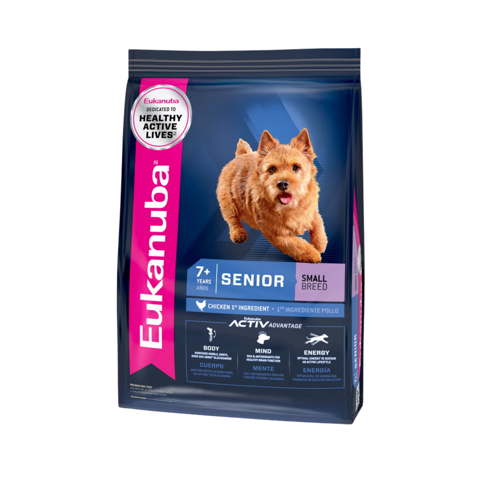 INGREDIENTES: Pollo, harina de subproductos de pollo, trigo, grasa de pollo, maíz, sorgo molido, sabores naturales (SOLO PARA MÉXICO: incluyendo levadura y aves), pulpa de remolacha seca, aceite vegetal, ovoproducto, cloruro de potasio, carbonato de calcio, sodio hexametafosfato, fructooligosacáridos, sal, aceite de pescado, cloruro de colina, vitaminas [acetato de DL-alfa tocoferol (fuente de vitamina E), biotina, pantotenato de calcio D, acetato de vitamina A, suplemento de niacina, clorhidrato de piridoxina (vitamina B6), mononitrato de tiamina ( vitamina B1), suplemento de vitamina B12, suplemento de riboflavina, suplemento de vitamina D3, ácido fólico], clorhidrato de glucosamina, oligoelementos [óxido de zinc, sulfato ferroso, sulfato de cobre, selenito de sodio, yodato de calcio], óxido de magnesio, caroteno, sulfato de condroitina, romero extracto, conservado con mezcla de tocoferoles y ácido cítrico.