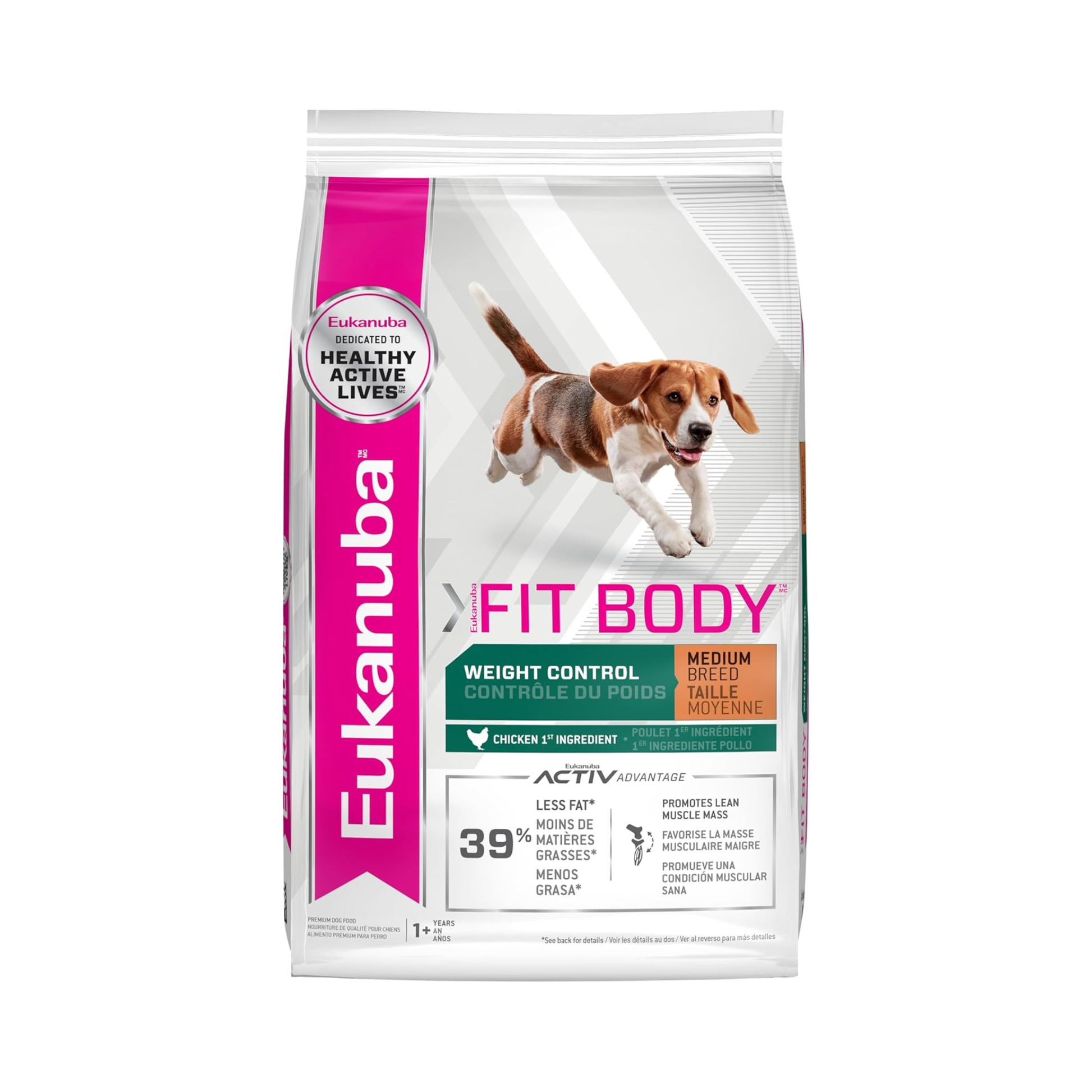 Eukanuba Fit Body Weight Control es un alimento seco completo y balanceado, formulado especialmente para perros adultos de raza mediana (de 10 a 25 kg) a partir de los 12 meses de edad, que necesitan mantener o controlar su peso corporal sin sacrificar nutrición ni energía.