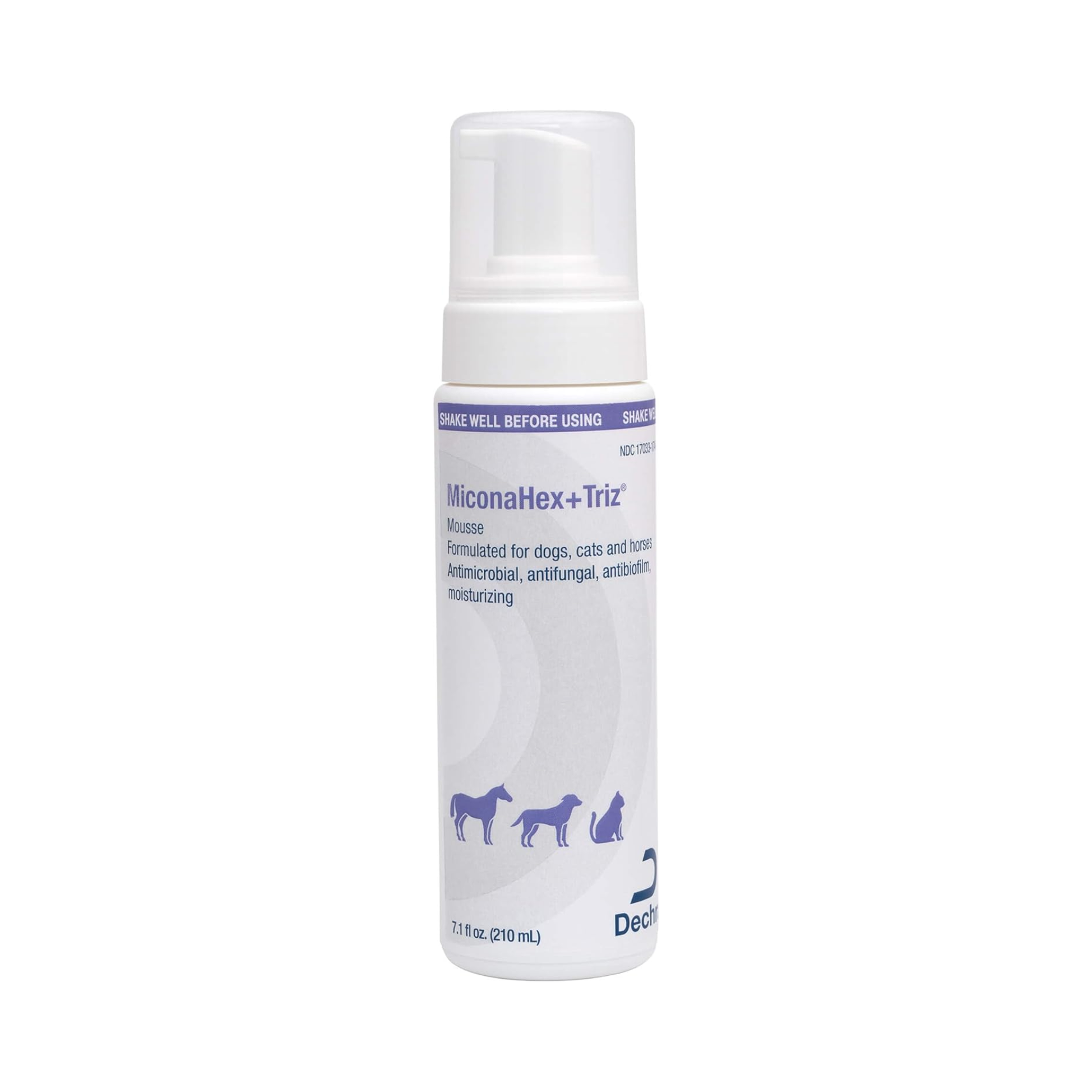 La mousse MiconaHex Triz (7,1 oz, 200ml) combate infecciones fúngicas y bacterianas en perros, gatos y caballos. Con miconazol y ceramidas, sana e hidrata. Formulado por veterinario, es fácil de aplicar, ideal para zonas específicas. La botella ecológica y reciclable apoya el cuidado ecológico, asegurando una piel sana y un pelaje brillante para las mascotas.
