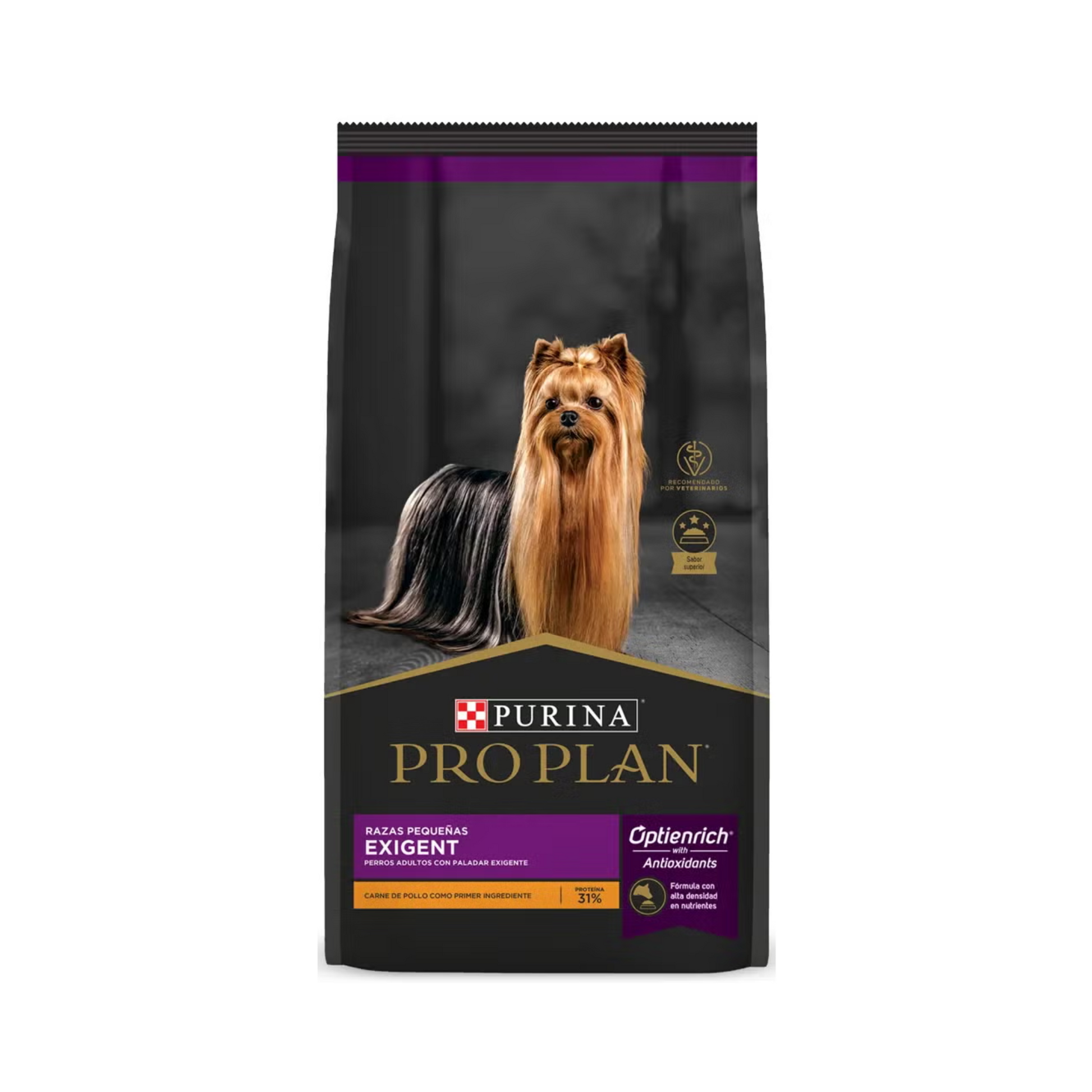 PRO PLAN® Exigent Small Breed con OptiEnrich® es una fórmula con una alta densidad de nutrientes y un sabor único que hasta los perros más selectivos disfrutarán. Salud que podrás percibir por medio de un pelaje sano y brillante.